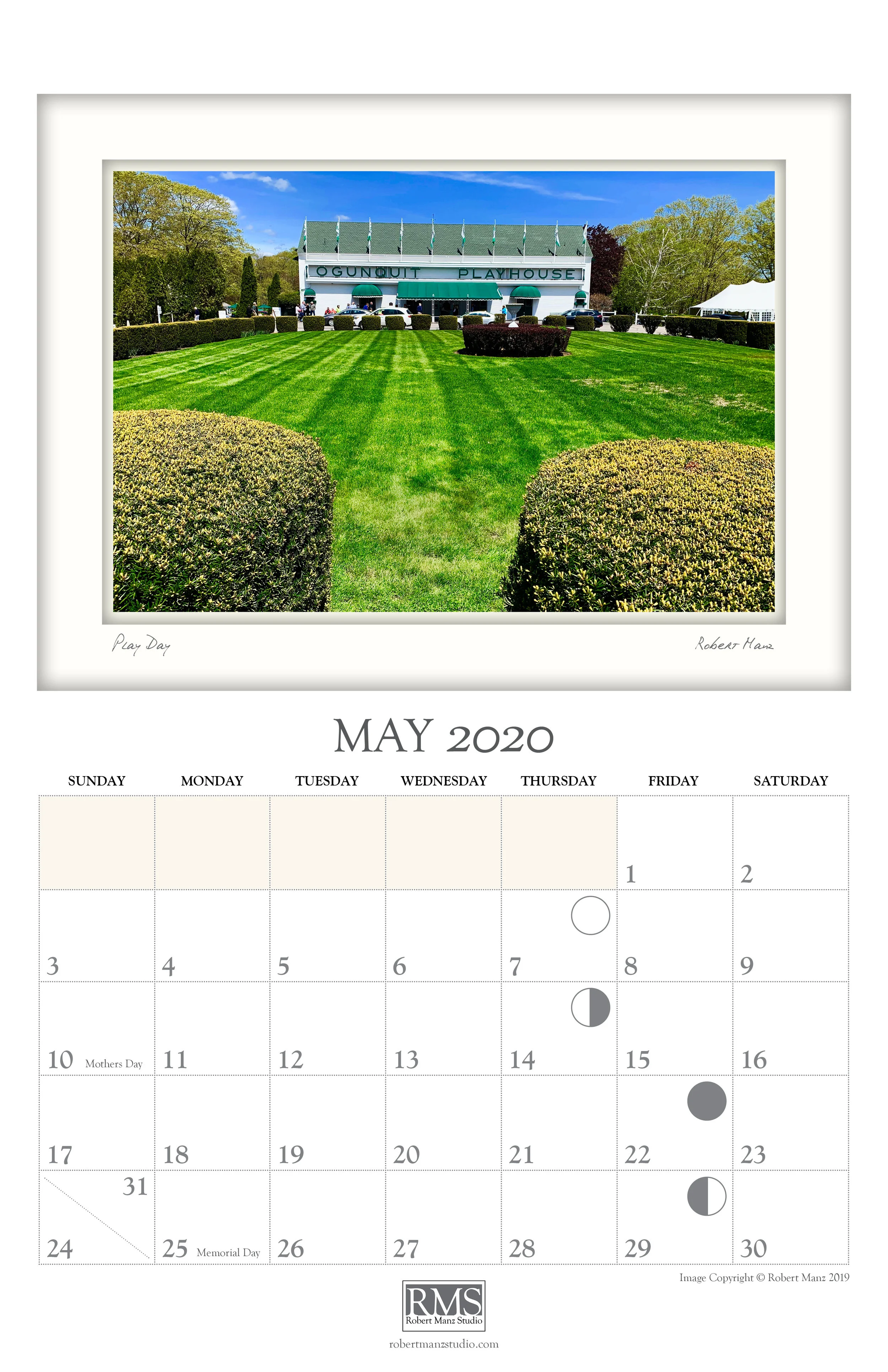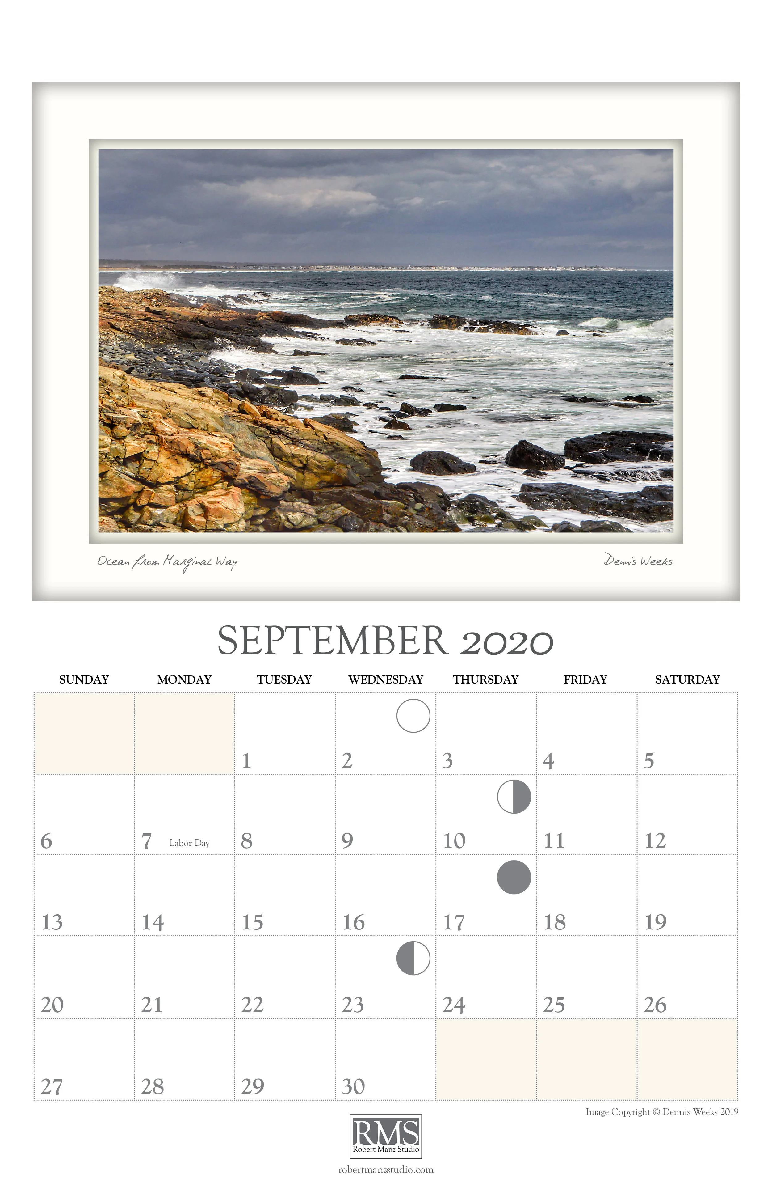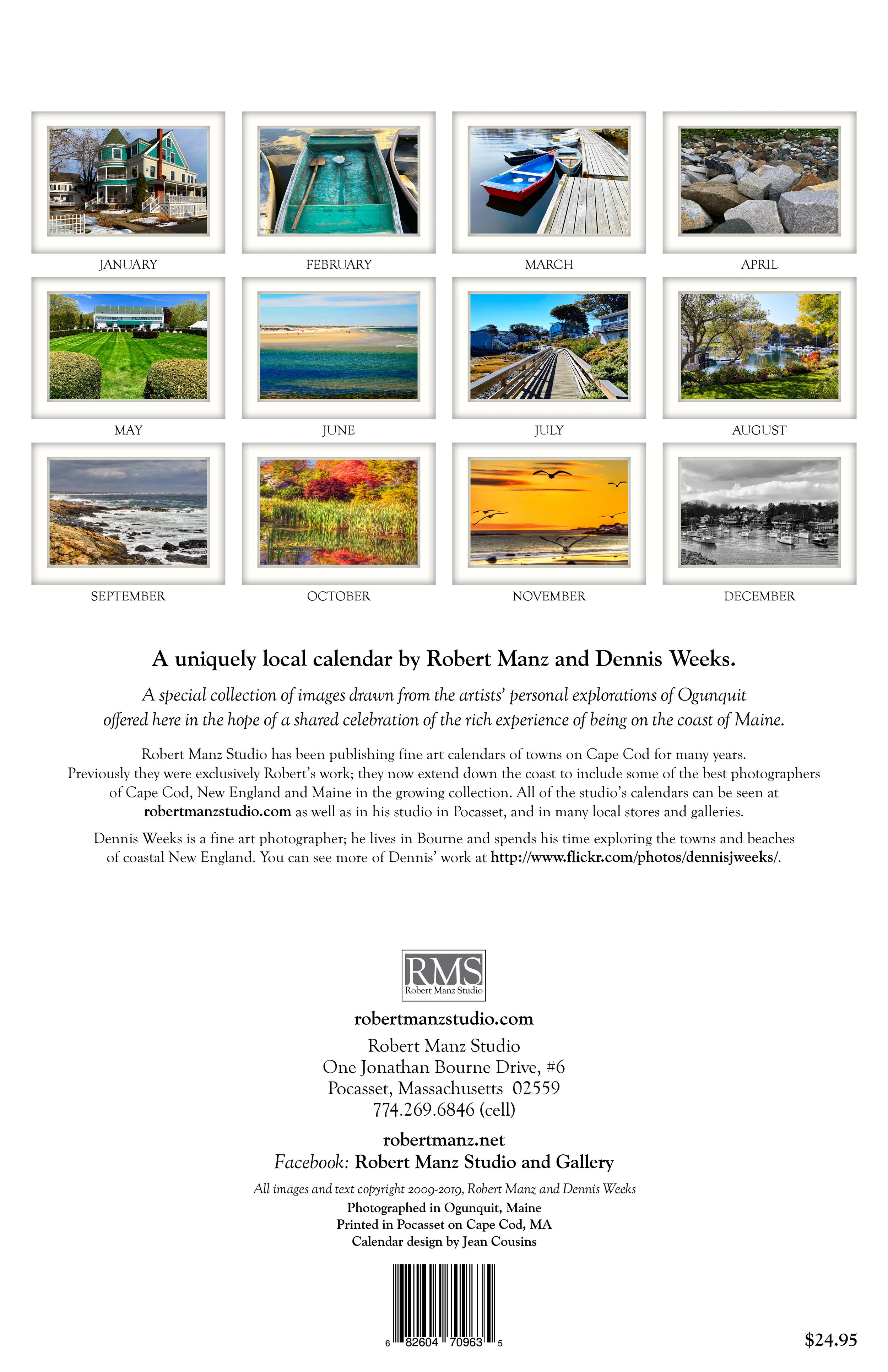 This calendar includes scenes from the area in and around Ogunquit, Maine. It extends themes of personal exploration and an intimate sense of place found in other publications of Robert Manz Studio.