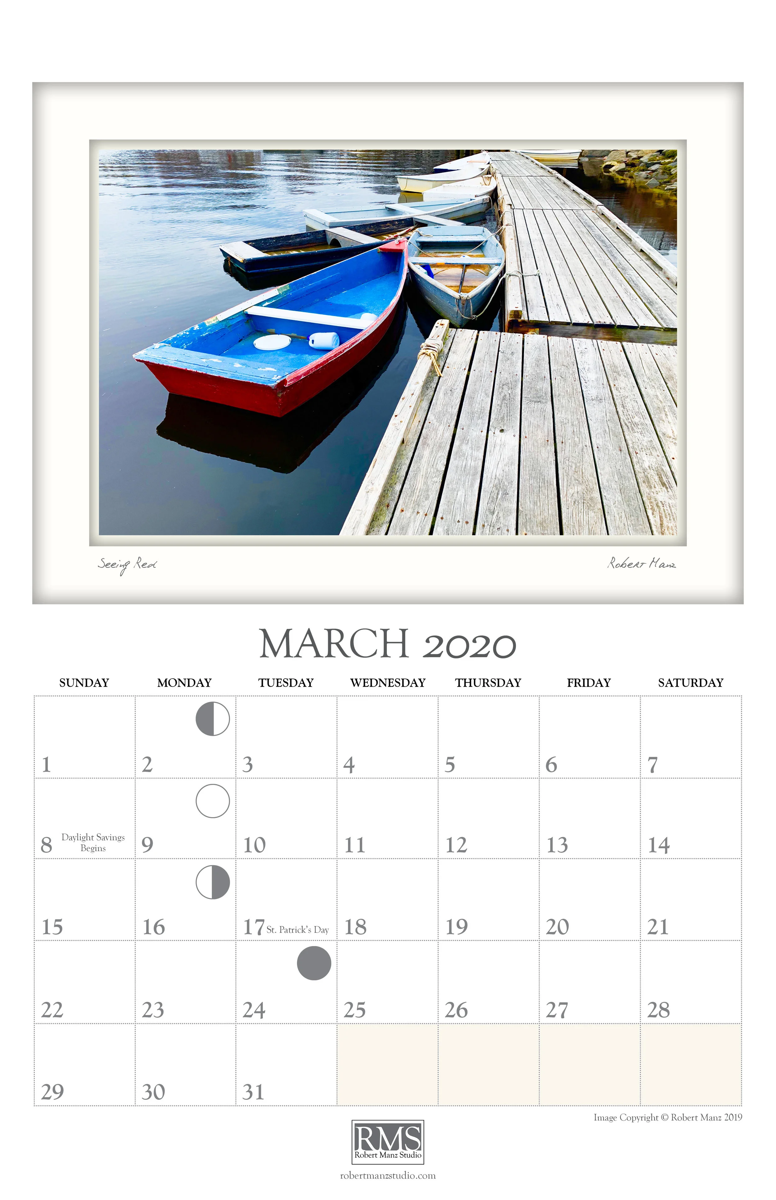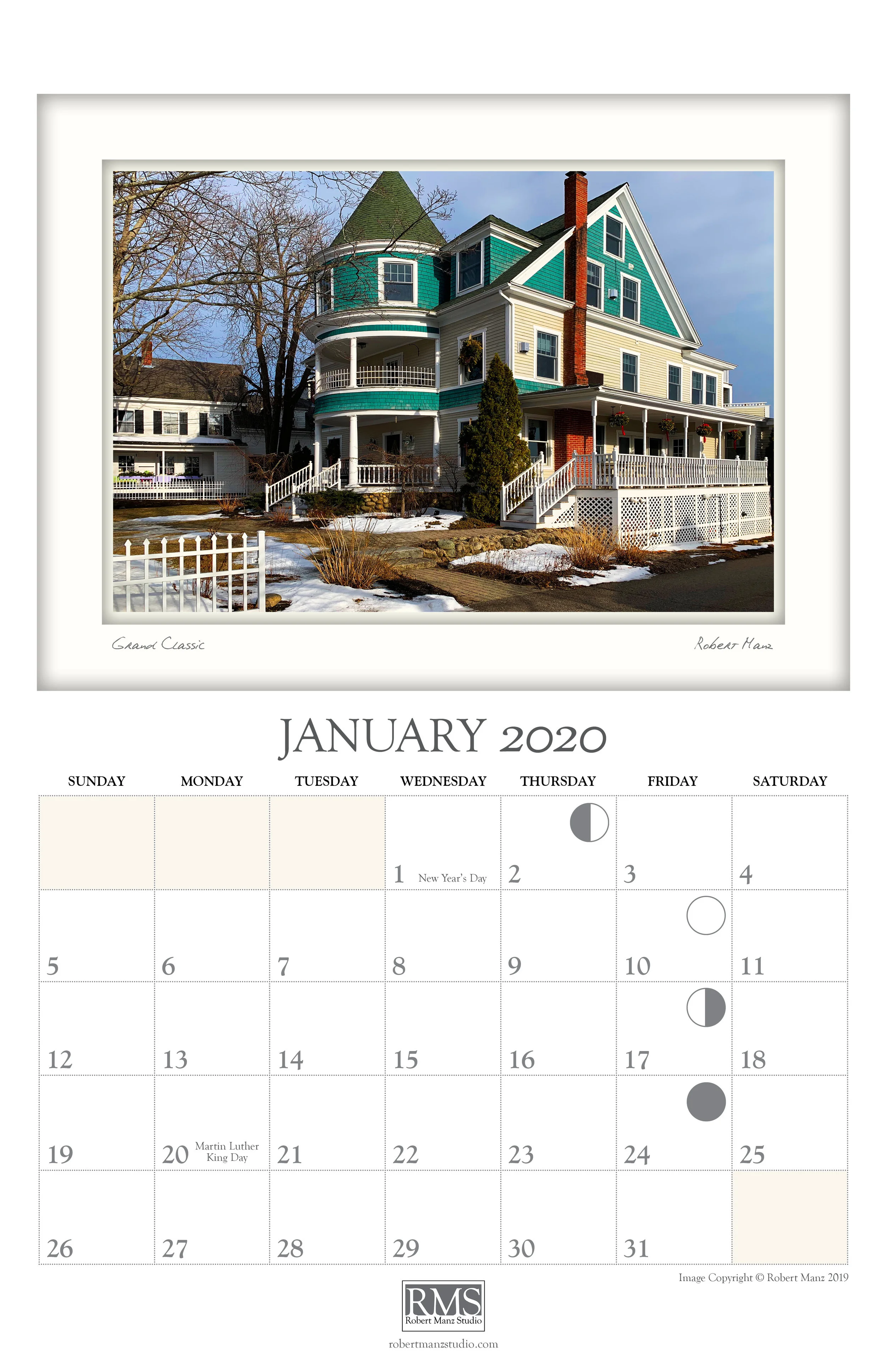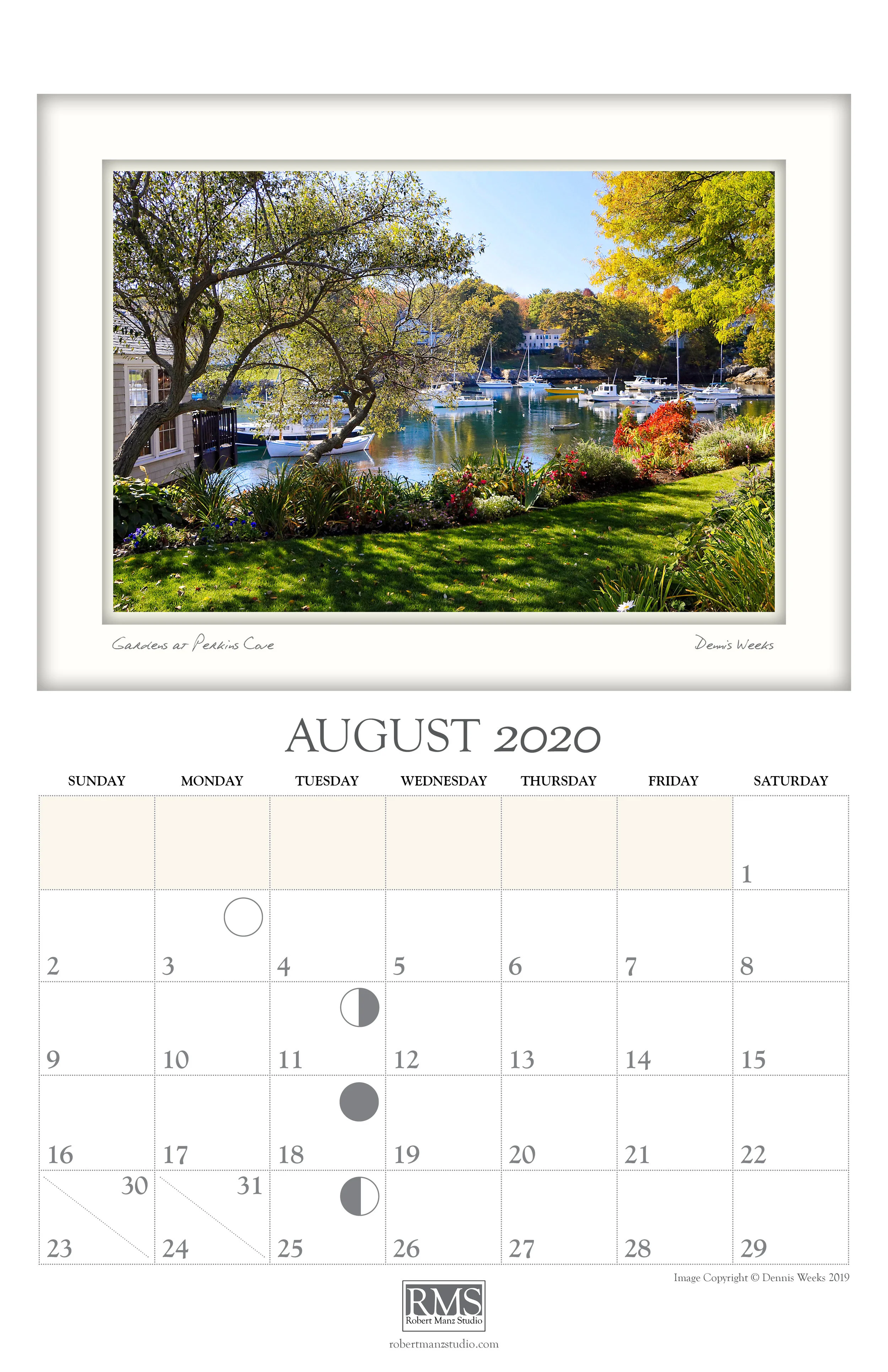 This calendar includes scenes from the area in and around Ogunquit, Maine. It extends themes of personal exploration and an intimate sense of place found in other publications of Robert Manz Studio.