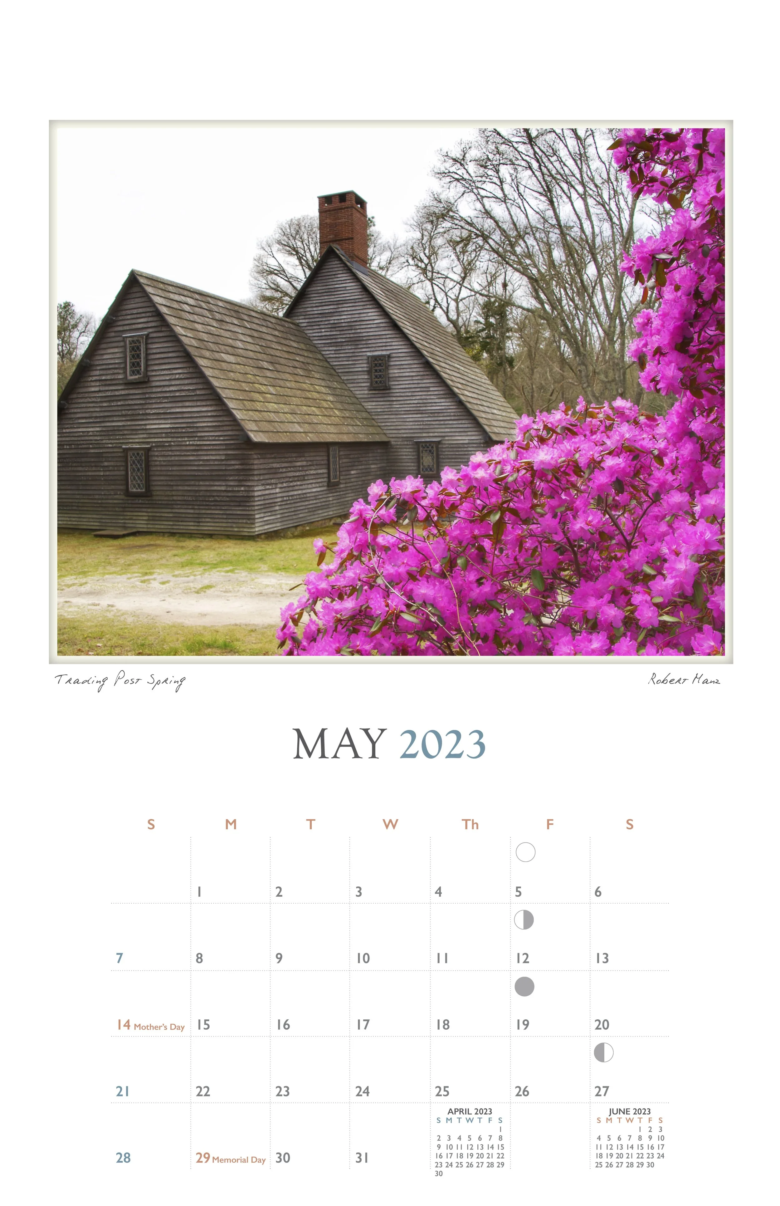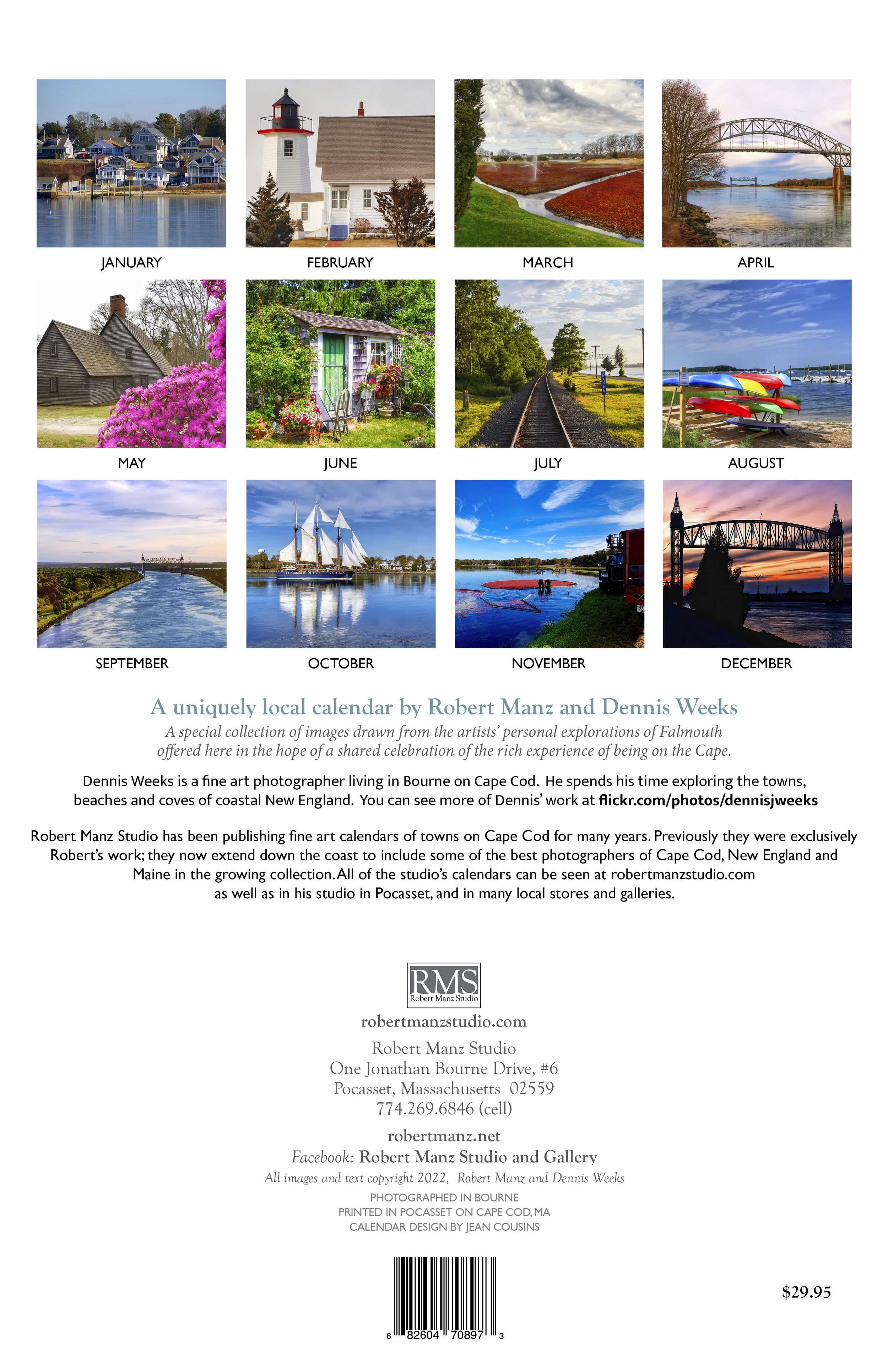 Robert Manz Studio has been publishing fine art calendars of towns on Cape Cod for many years. Previously they were exclusively Robert’s work; they now extend down the coast to include some of the best photographers of Cape Cod, New England and Maine in the growing collection. All of the studio’s calendars can be seen at robertmanzstudio.com