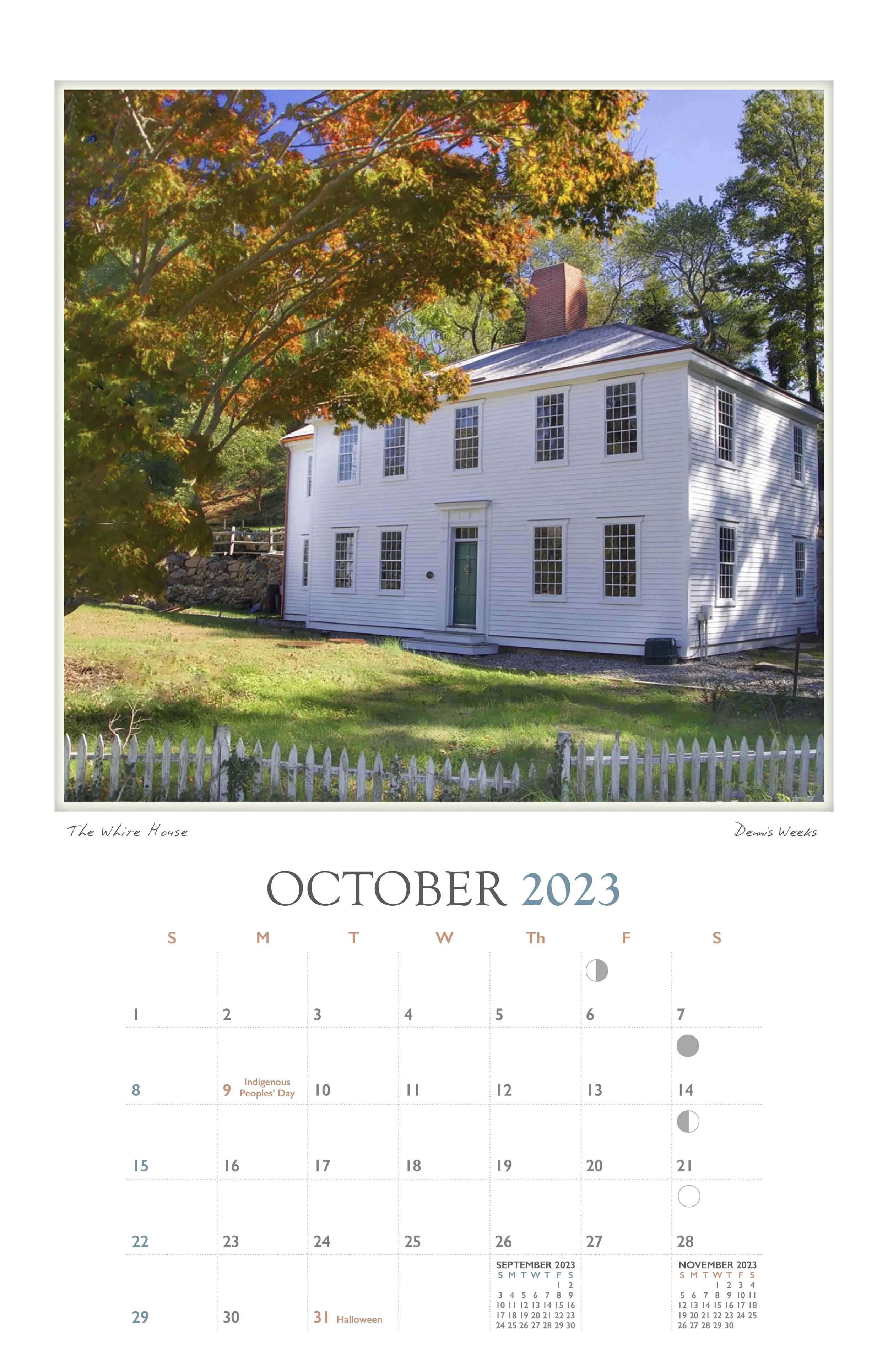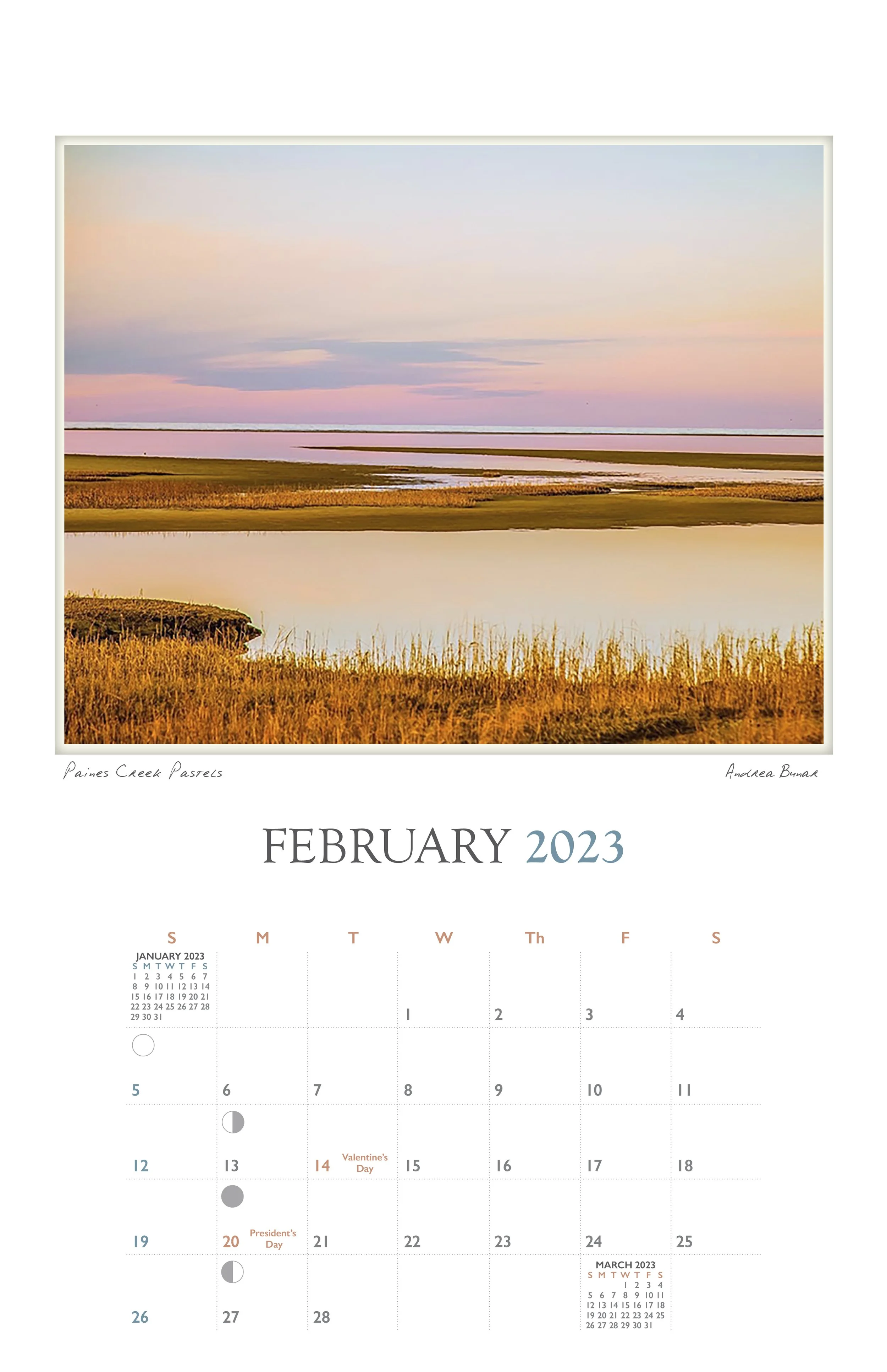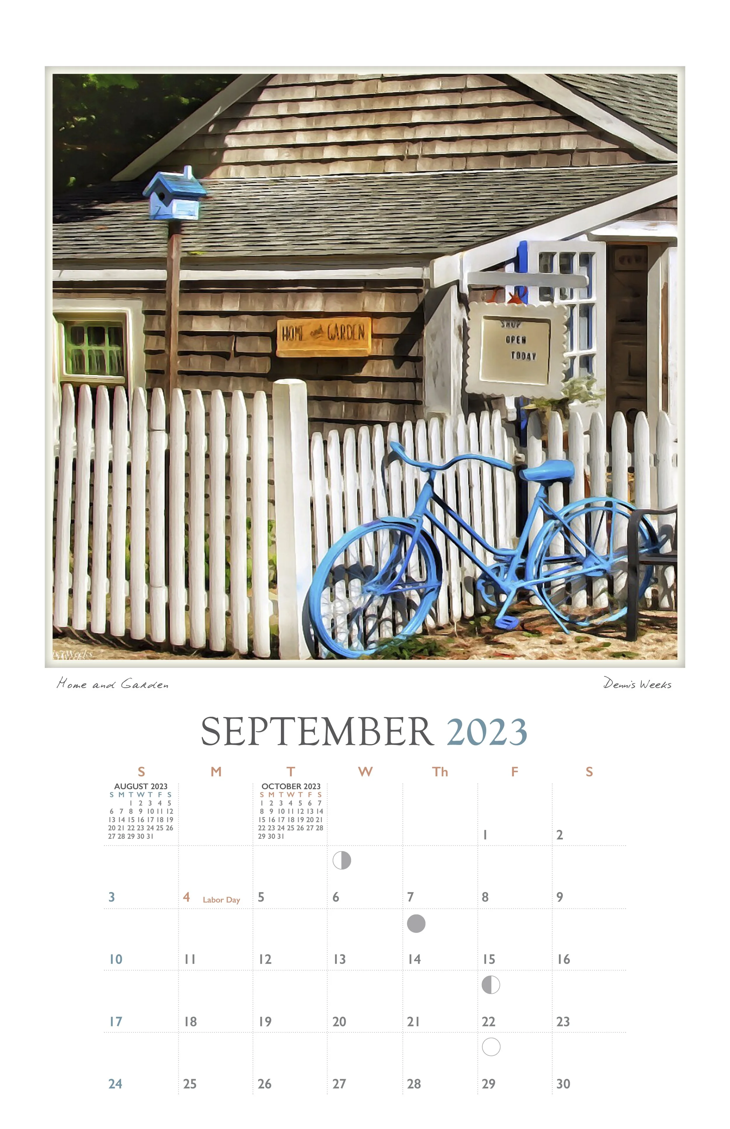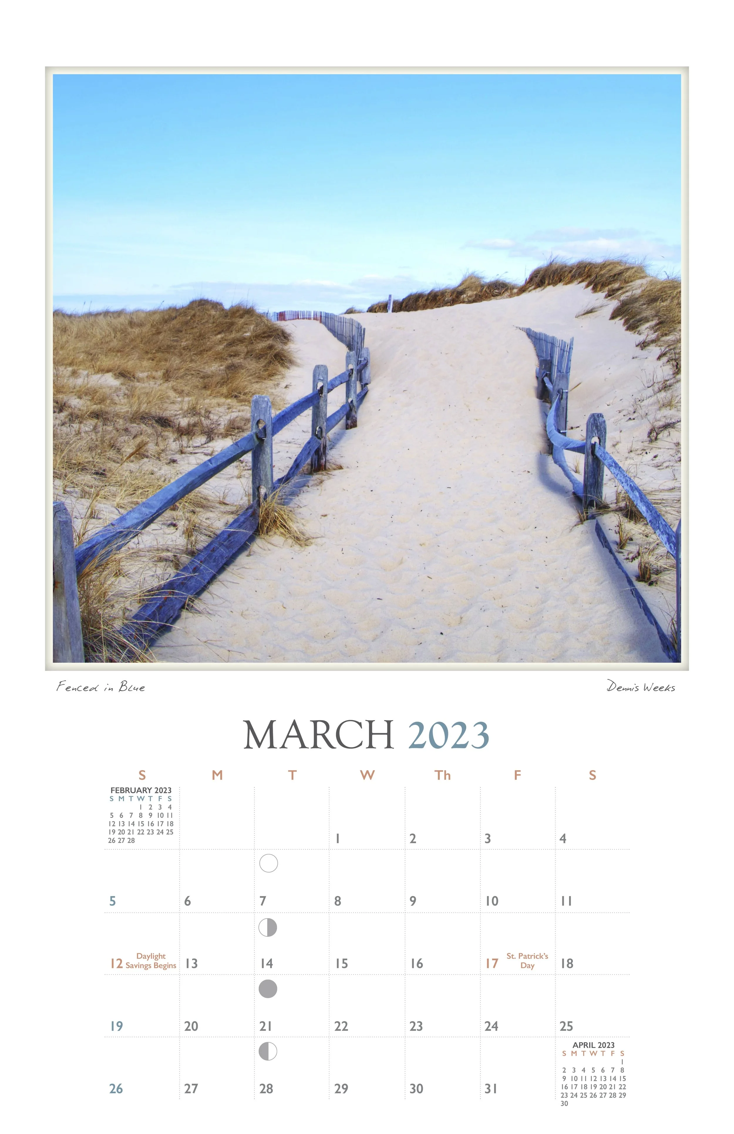 This calendar contains images of Brewster on Cape Cod by artist photographers Andrea Bunar, Dennis Weeks and Robert Manz.