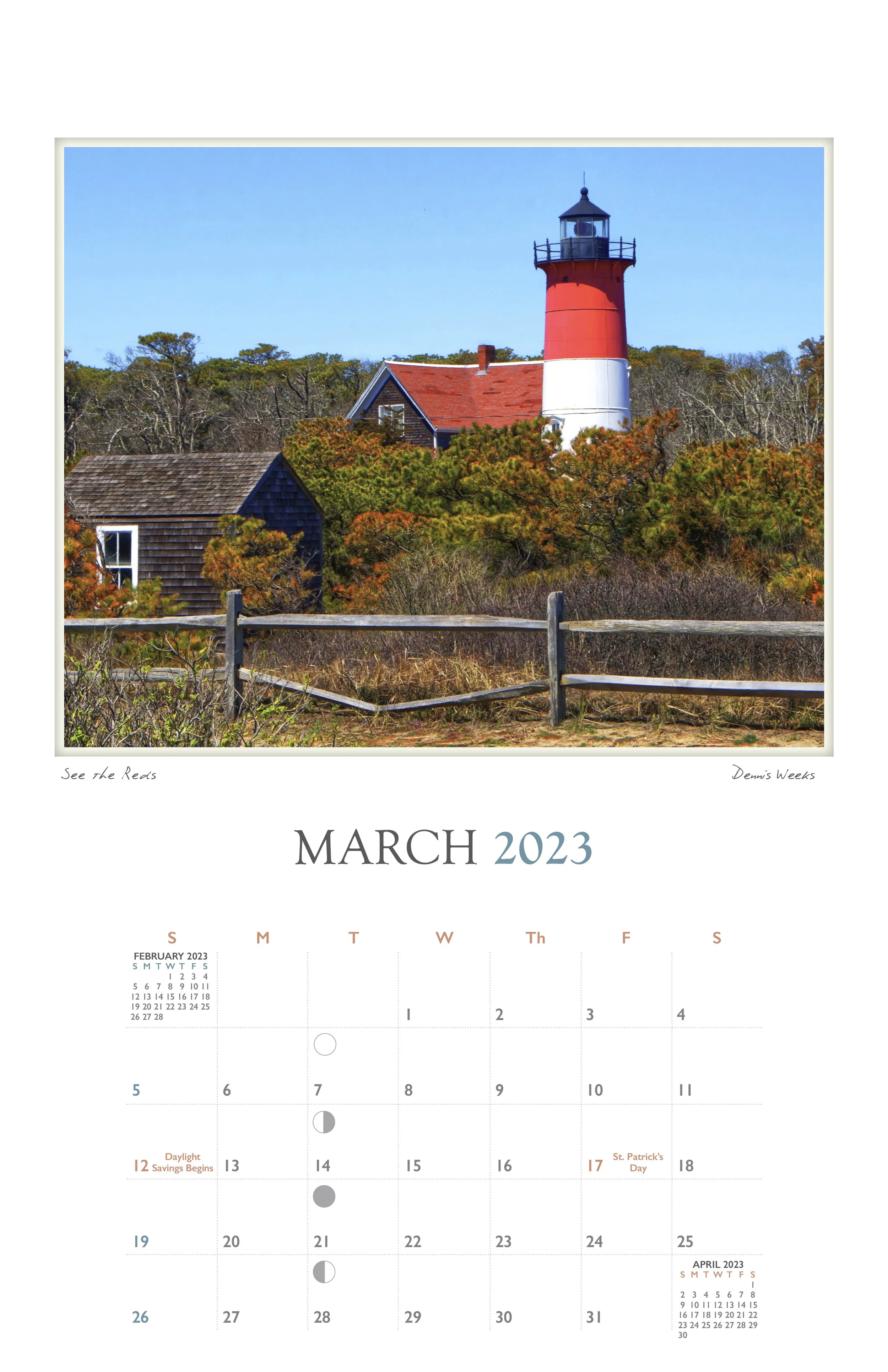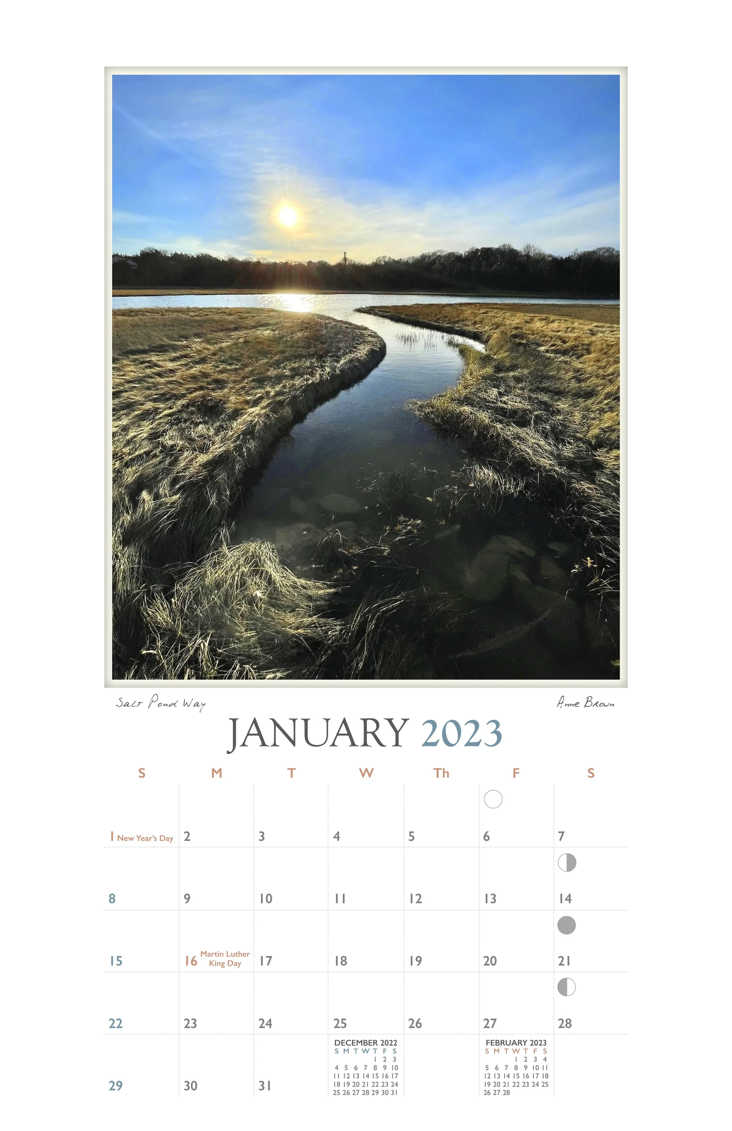 This calendar contains images of Eastham on Cape Cod by artist photographers Anne Brown, Dennis Weeks and Robert Manz. Available now.