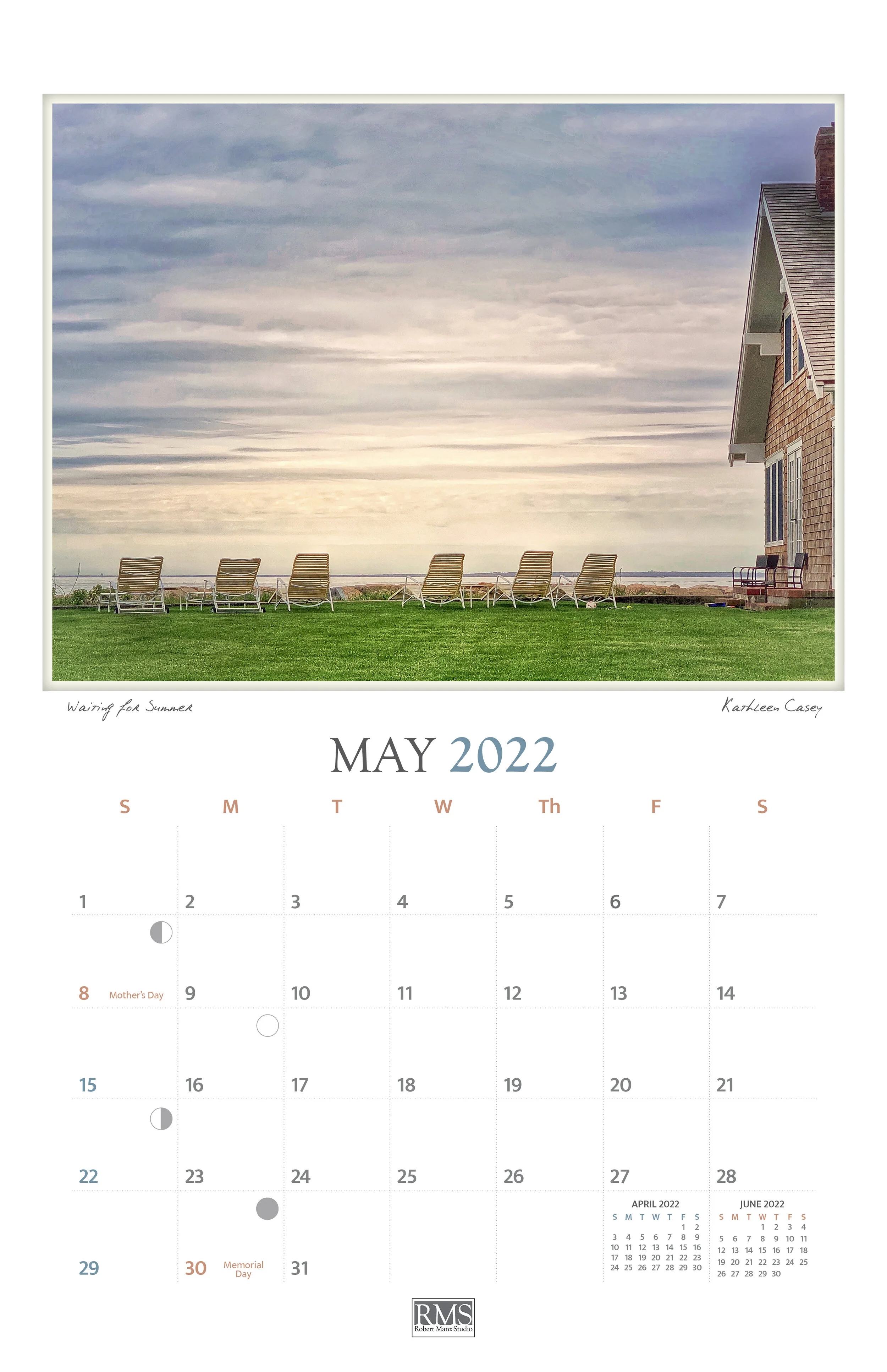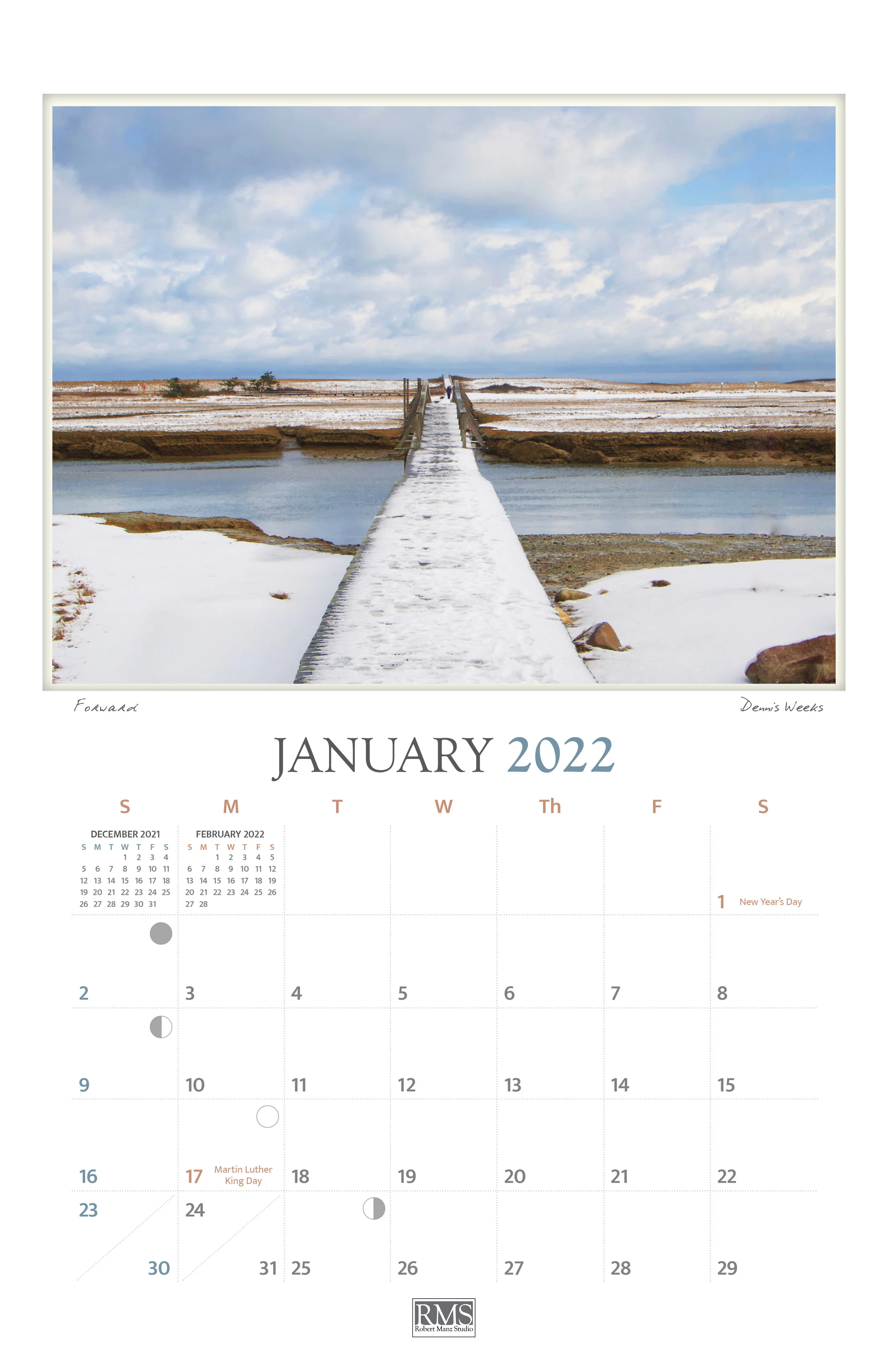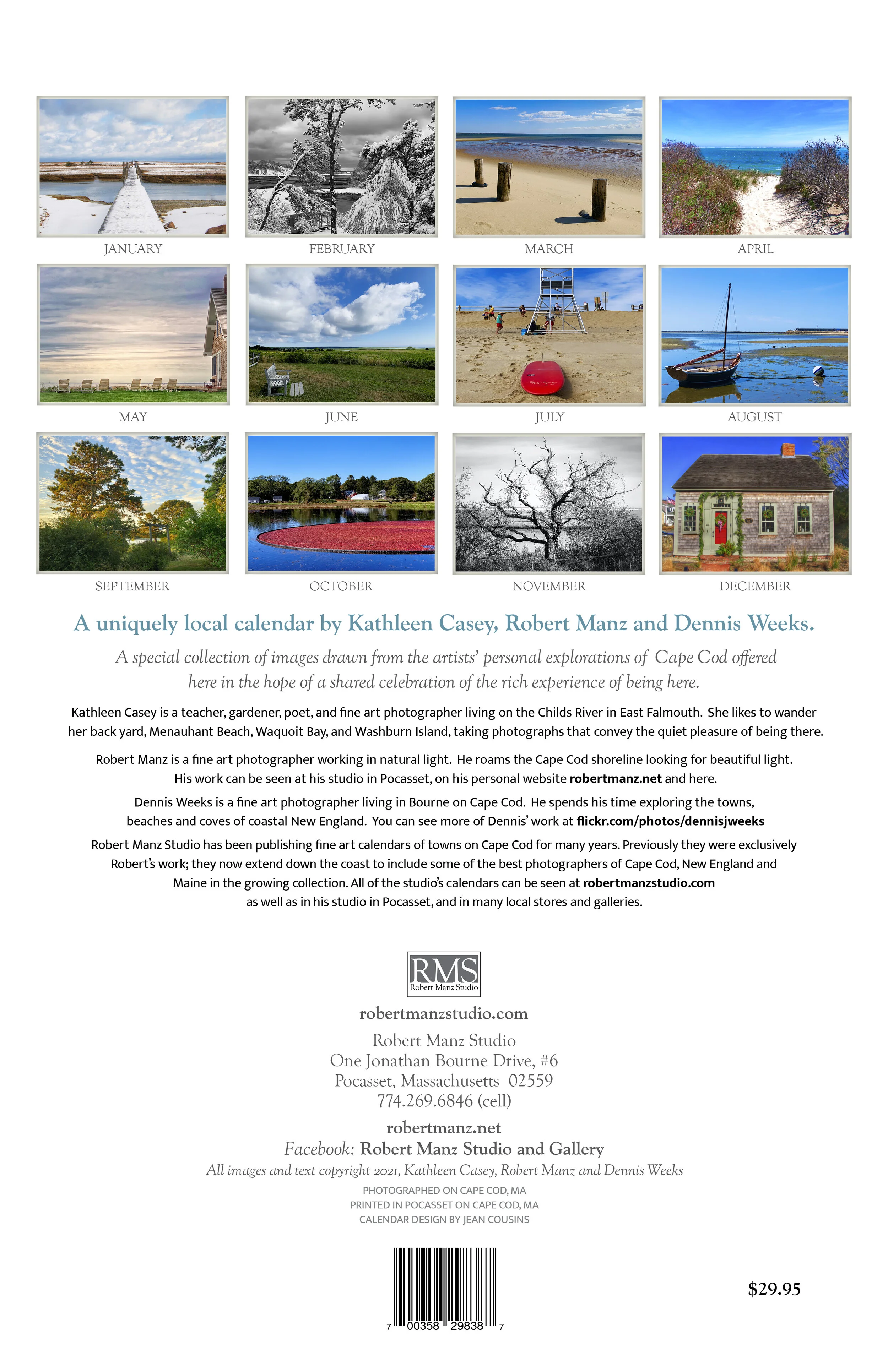 This calendar contains images of Cape Cod by Kathleen Casey, Robert Manz and Dennis Weeks.
