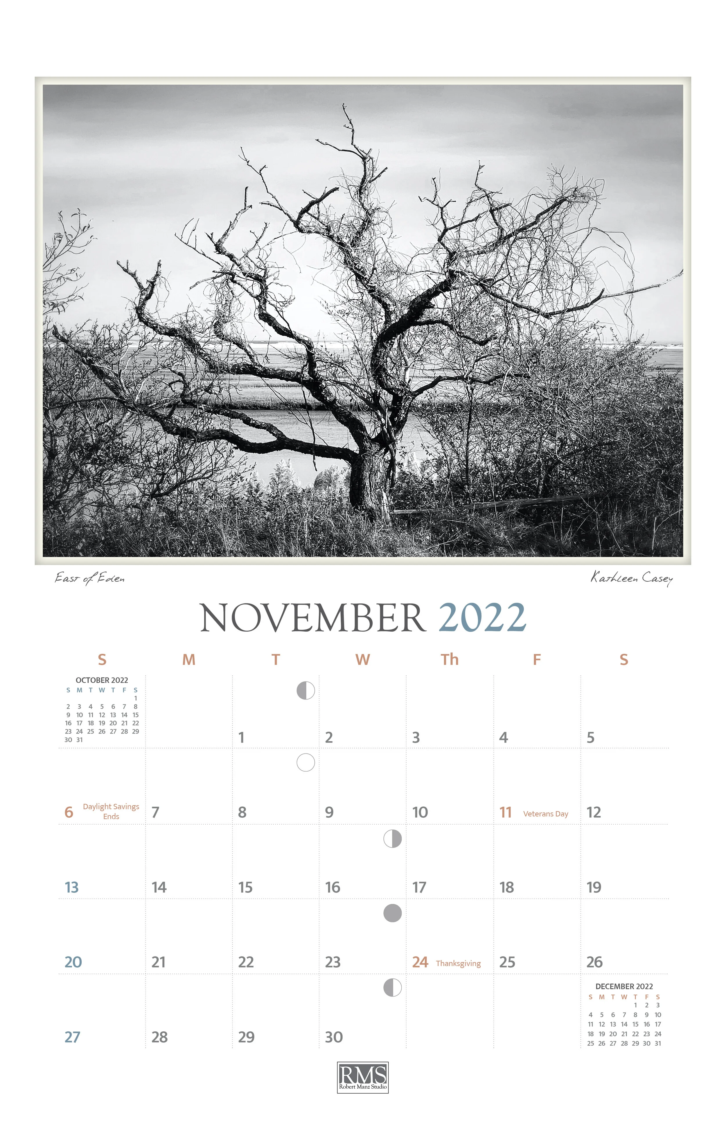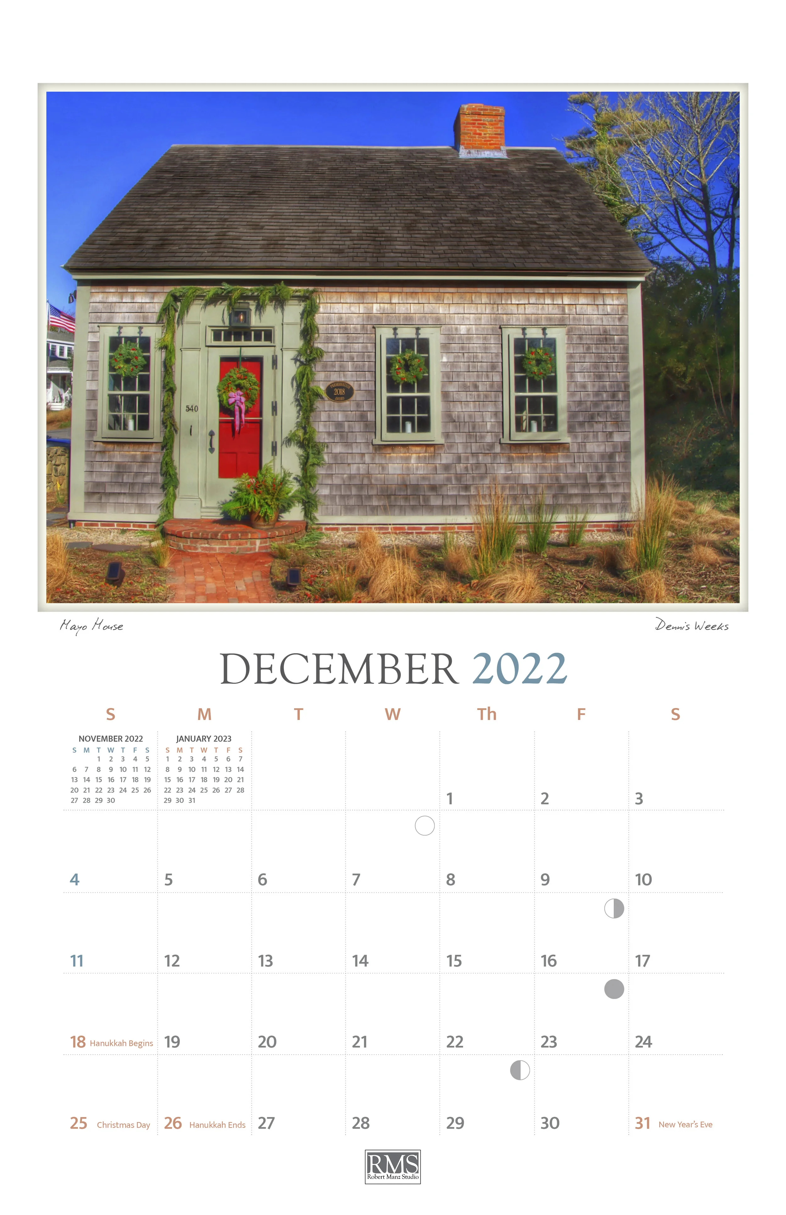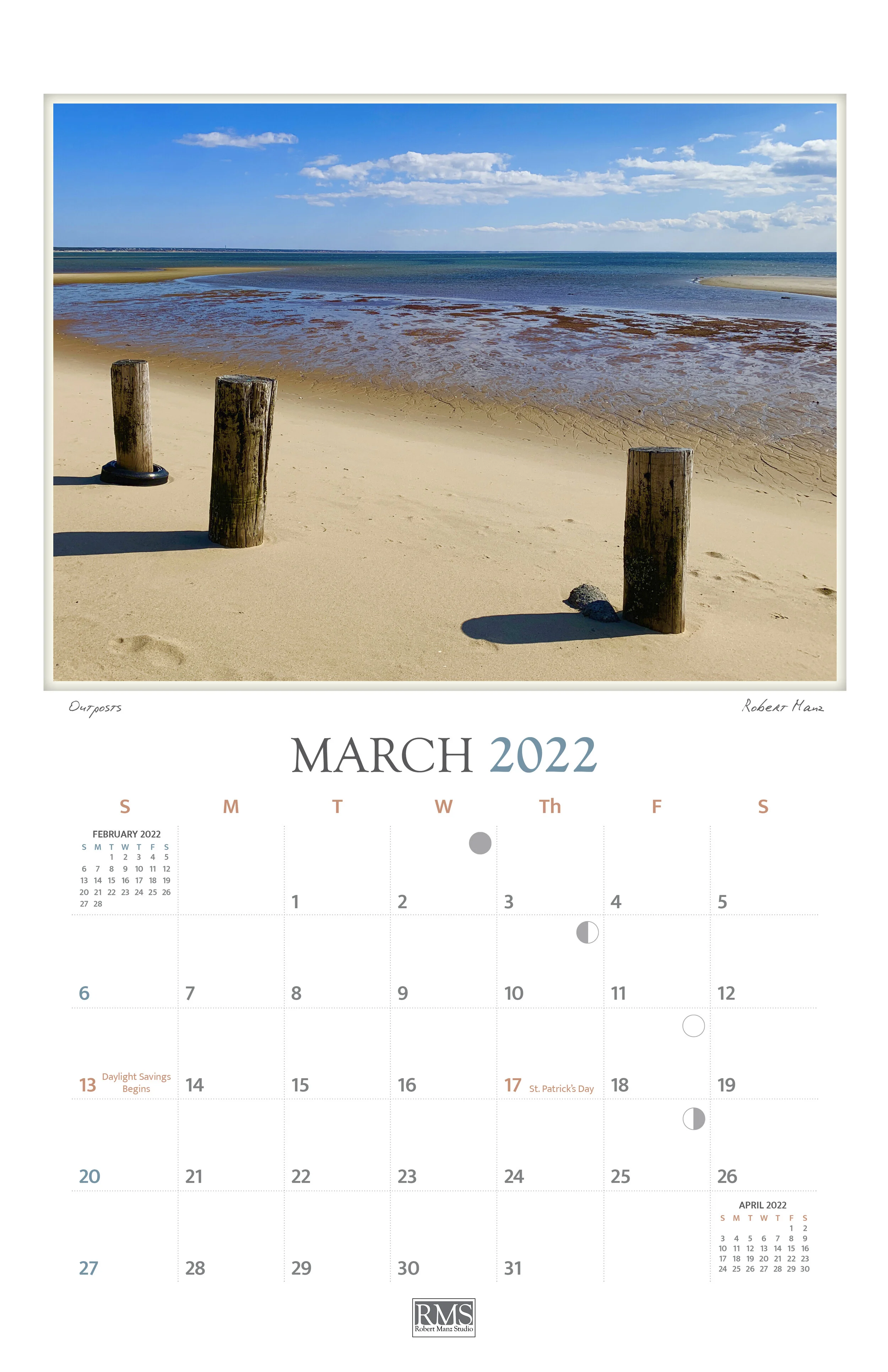 This calendar contains images of Cape Cod by Kathleen Casey, Robert Manz and Dennis Weeks.